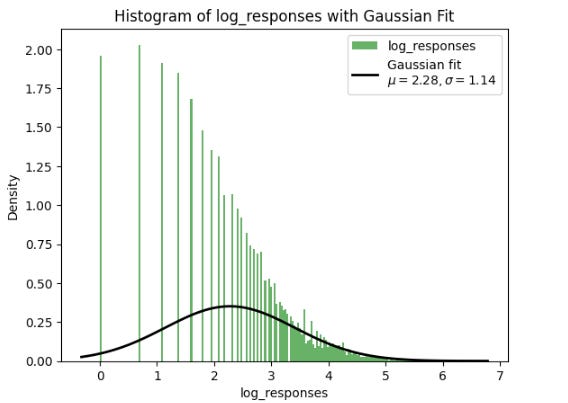 I did a similar transformation for log_responses, which didn’t look like a Gaussian (normal) distribution at all.