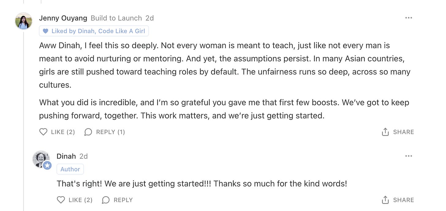 That same day, I started writing a story for Code Like a Girl and realized I was making the exact mistakes the feedback had flagged — too long, too diary-like, no clear call to action. So I dropped the draft into ChatGPT and asked if it should be split into separate stories. It suggested a series and even outlined them for me.