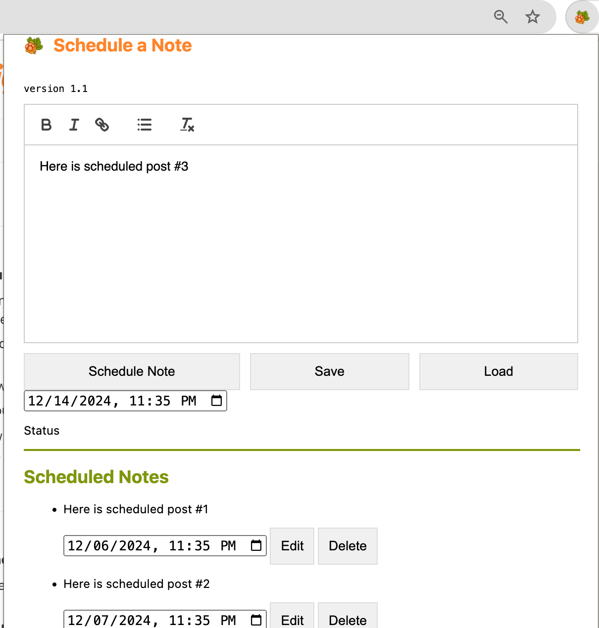 NOTE: You need to leave the Chrome Browser tab running for Scheduled Notes posting to work correctly.