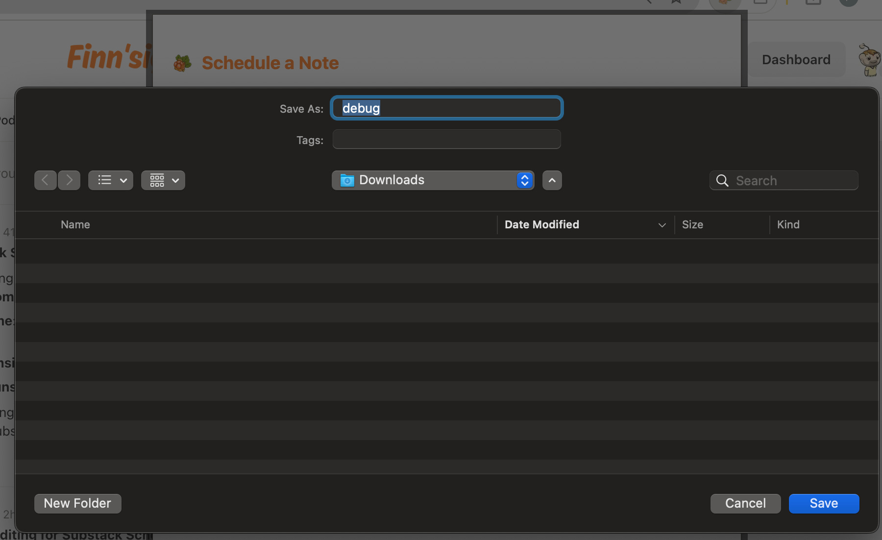 It will prompt to save a debug.json file on your default Downloads folder. This file contains details needed to troubleshoot any formatting issues.